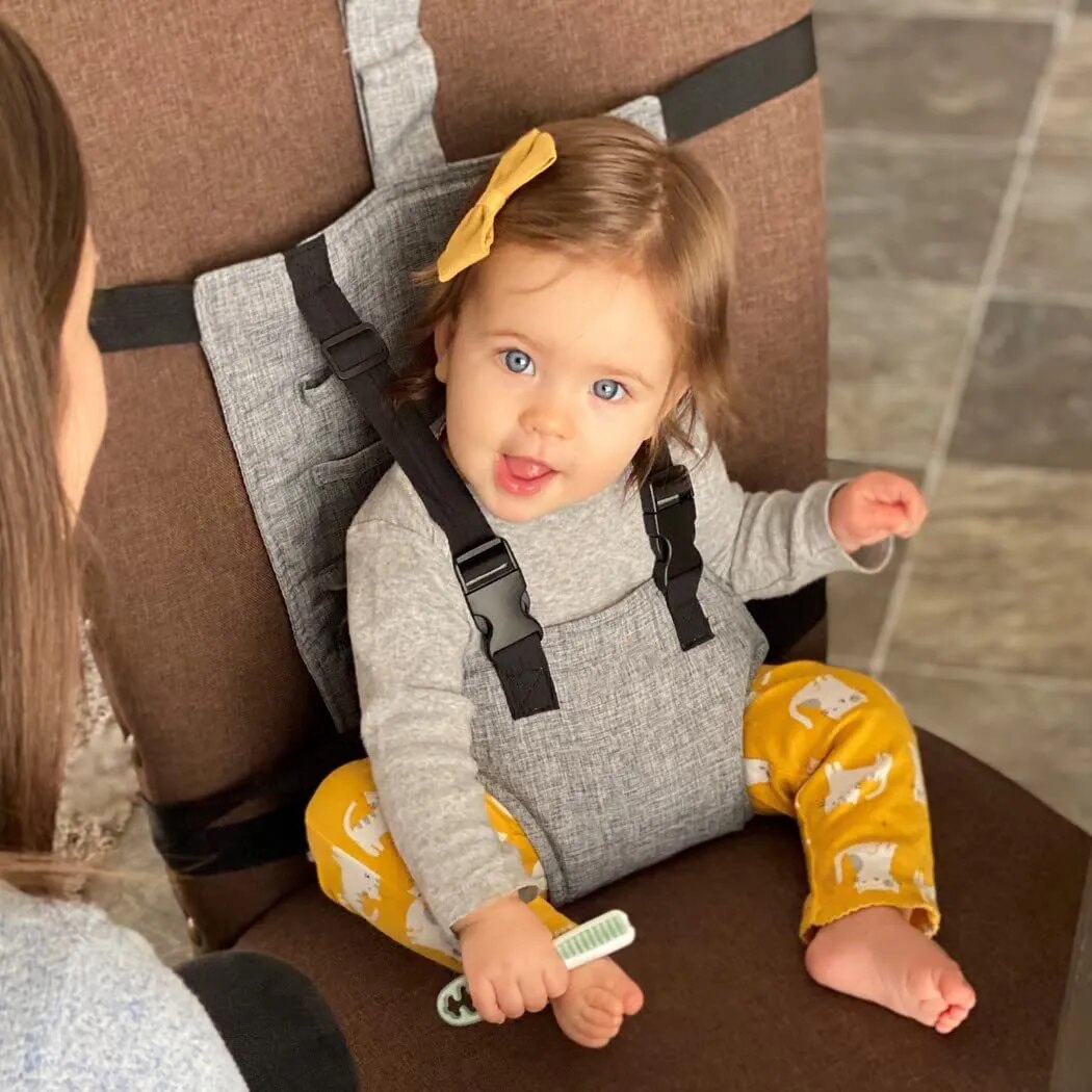 Suporte para cadeira alta para bebês, cinto de segurança para viagem, impulsionador de alimentação para bebês, assento fácil portátil com alças ajustáveis de ombro.